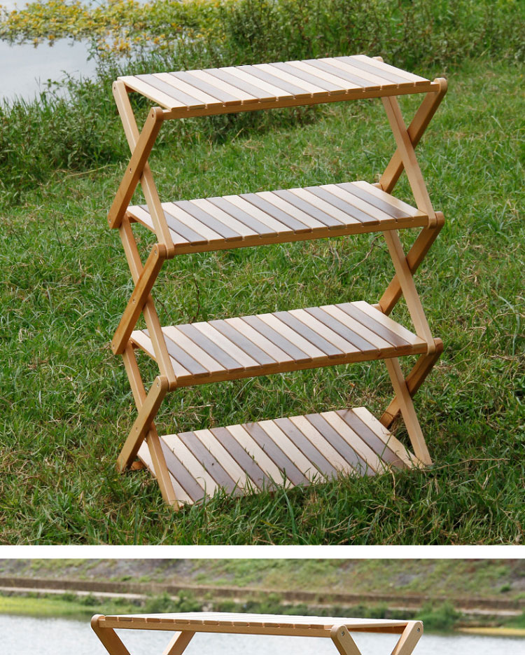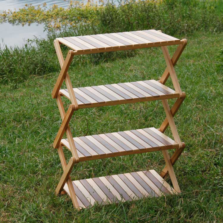 Rack de almacenamiento de múltiples capas de madera maciza portátil al aire libre